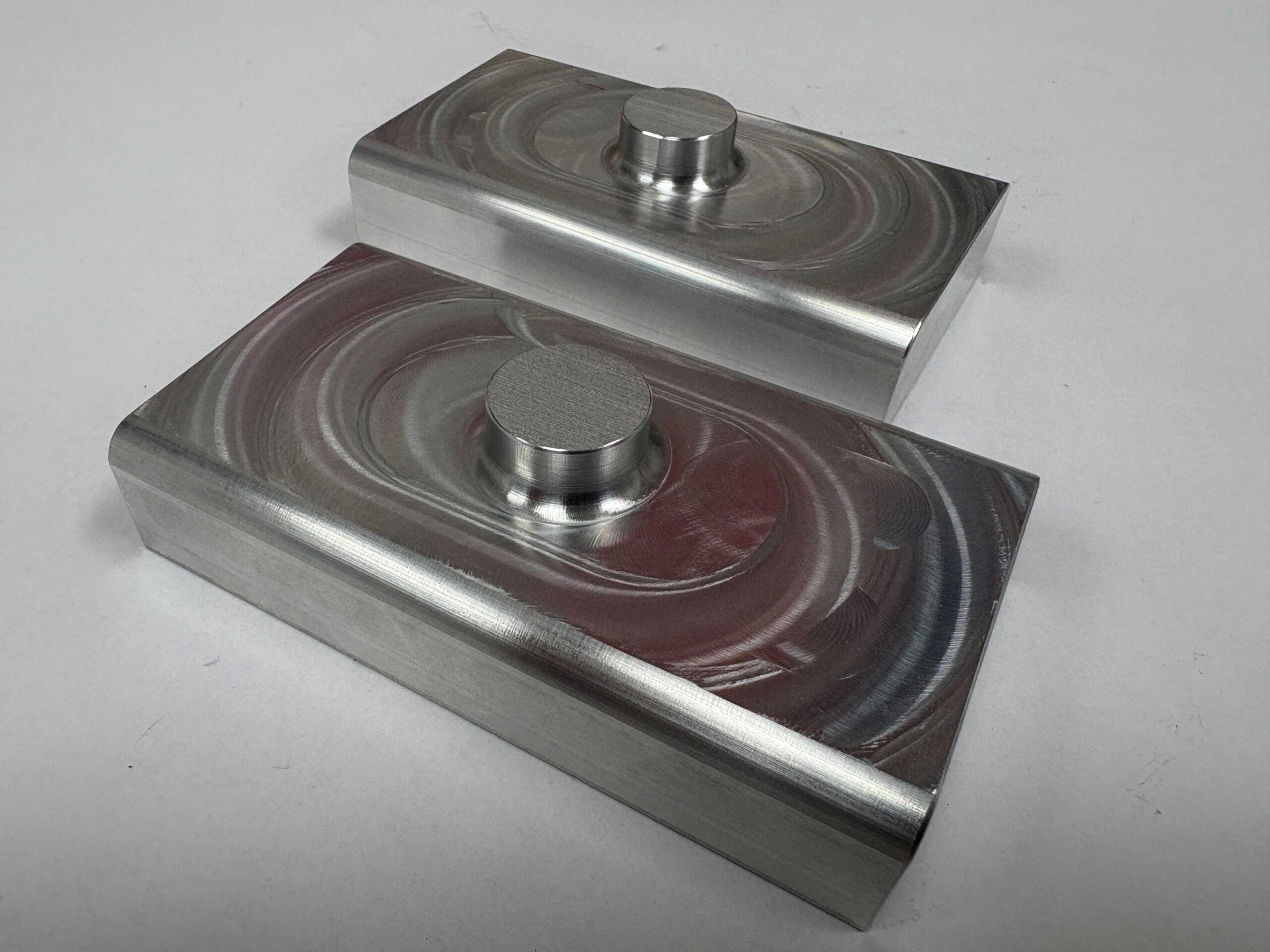 RWA 2230 rear lowering blocks are made of billet aluminum and precision machined. The blocks are designed to replace the stock rubber bushings at the spring/U bolt mount and will lower the rear of the car between 1″- 1 1/2″. By removing the rubber bushings, spring wind up and axle hop is also reduced. Specify what year Pinto you have and we will supply the correct blocks. 71-73 require round locating pad and the 74-80 require oval mounting pad. The stock U bolts can be retained. Sold in pairs.